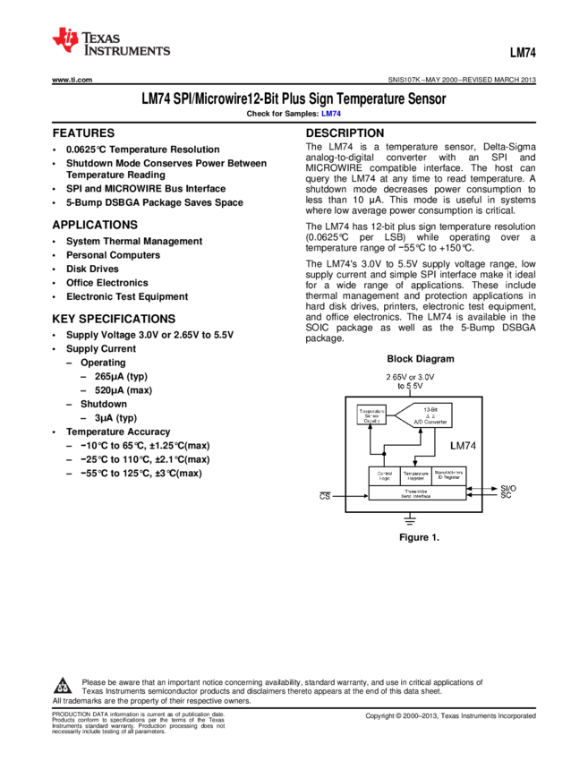 Temp Sensor Digital Serial (3-Wire, SPI) 5-Pin uSMD T/R
