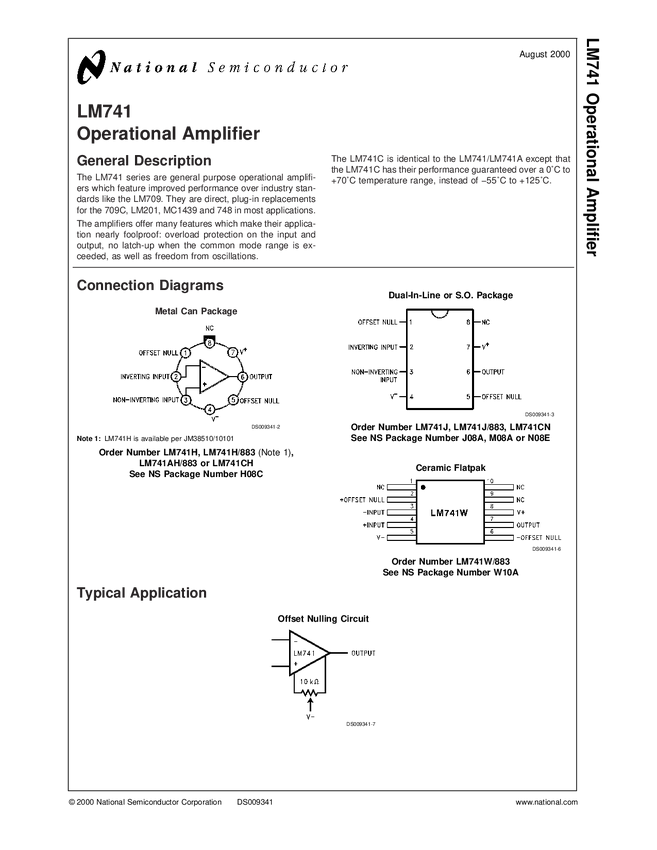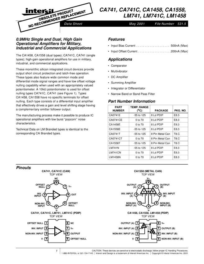 0.9MHz Single and Dual, High Gain Operational Amplifiers for Military, Industrial and Commercial Applications