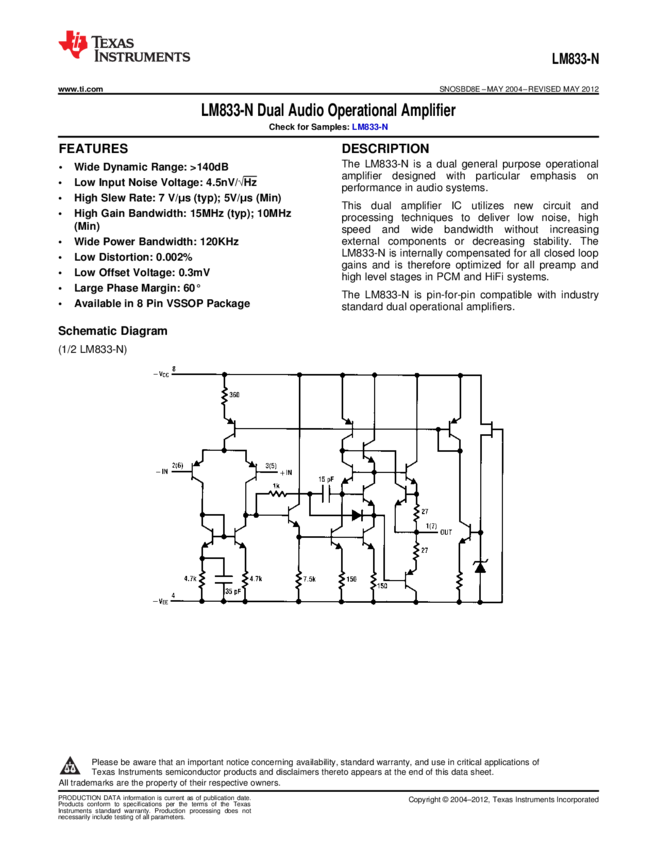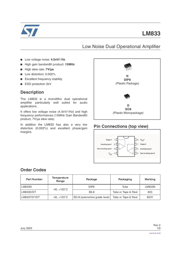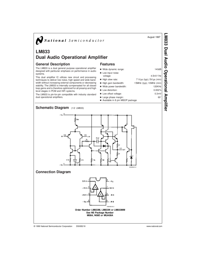 Układ scalony; LM833; wzmacniacz operacyjny; 2 kanały; DIP8; THT; ON Semiconductor; LM833NG; RoHS