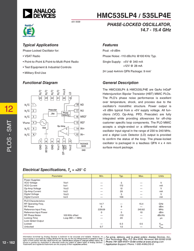 Phase-Locked Oscillator SMT, 14.7 - 15.4 GHz
