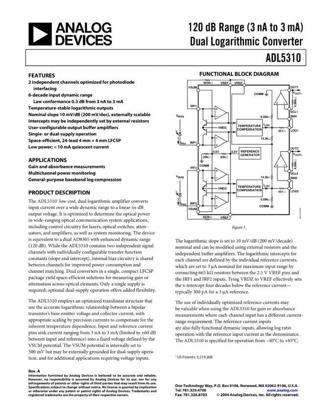 ADL5304: High Speed, 200 dB Range, Logarithmic Converter