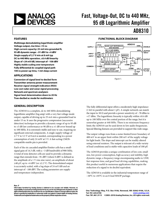 AD8310: Fast, Voltage-Out, DC to Logarithmic Amplifier