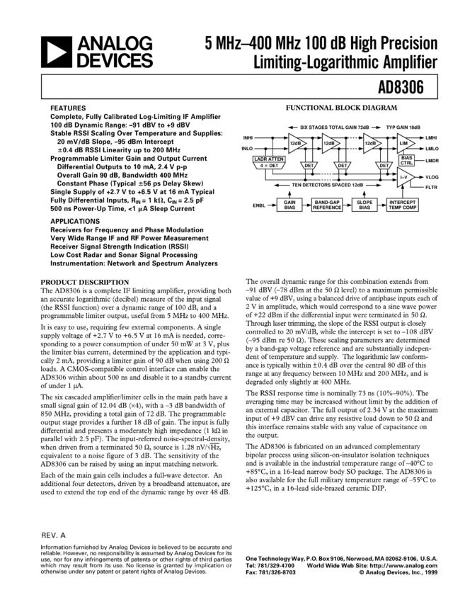 AD8306: High Precision Limiting - Logarithmic Amplifier