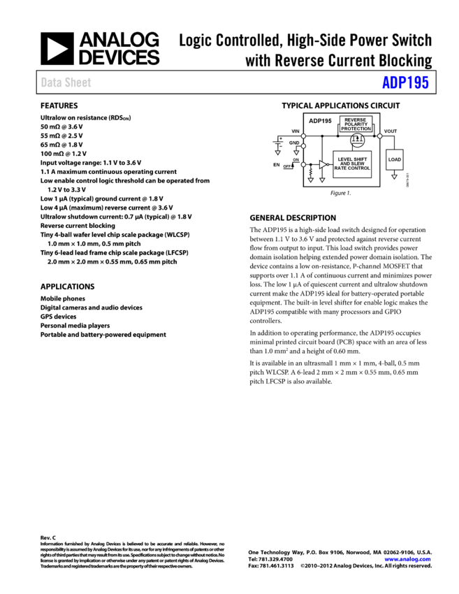 ADP195: Logic Controlled, High-Side Power Switch with Reverse Current Blocking