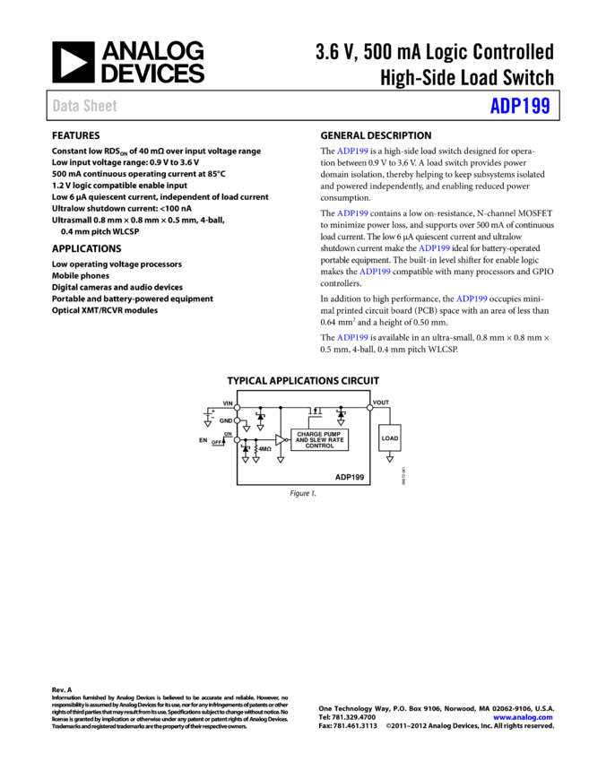 ADP199: 3.6 V, 500 mA Logic Controlled High-Side Load Switch