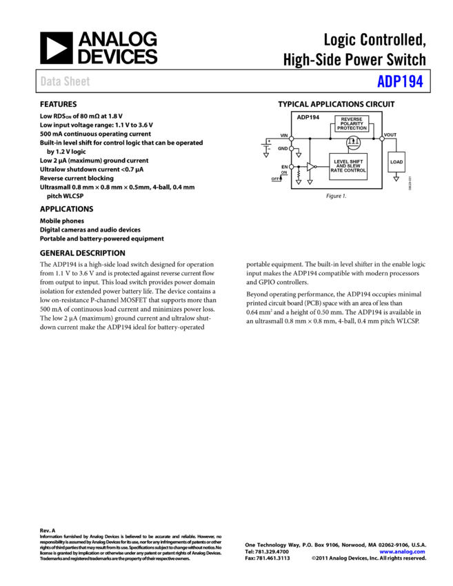 ADP194: Logic Controlled, High-Side Power Switch