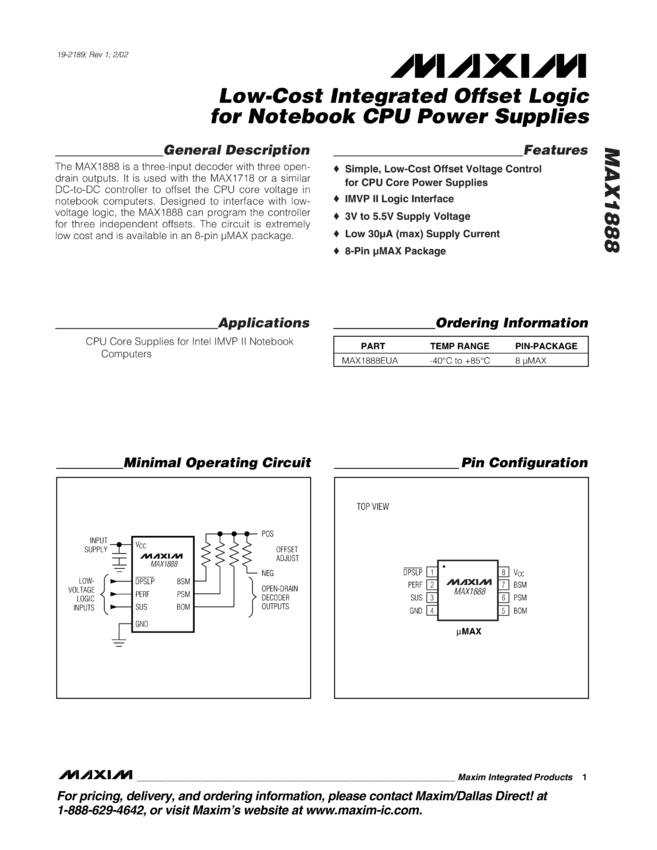 MAX1888 Low-Cost Integrated Offset Logic for Notebook CPU Power Supplies