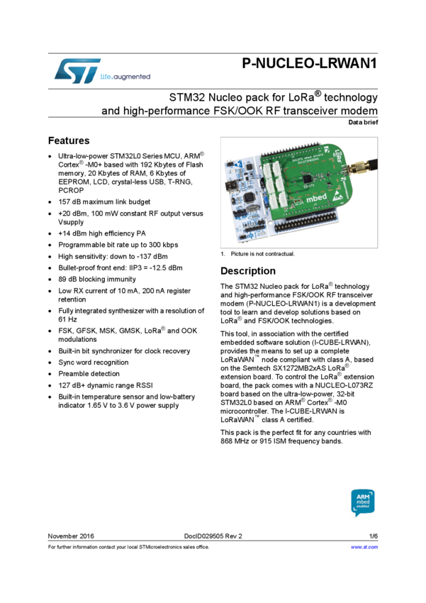 Low-power wireless Nucleo pack with Nucleo-L073RZ and LoRa expansion board
