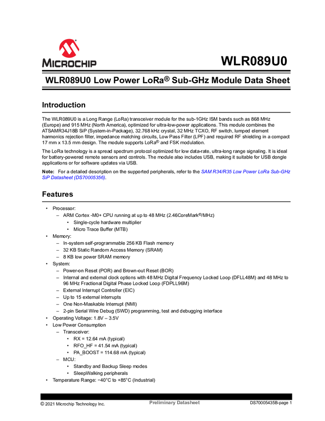 SAM R34-R35 Low Power LoRa Sub-GHz SiP Datasheet
