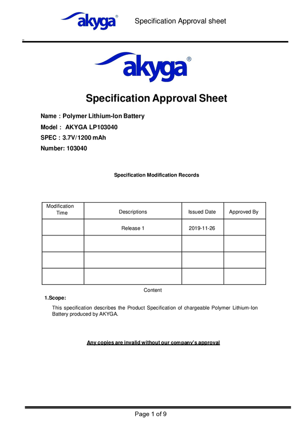 Pakiet akumulatorów Akumulator specjalny, LiPo Akyga LP103040, 3.7 V, 1200 mAh