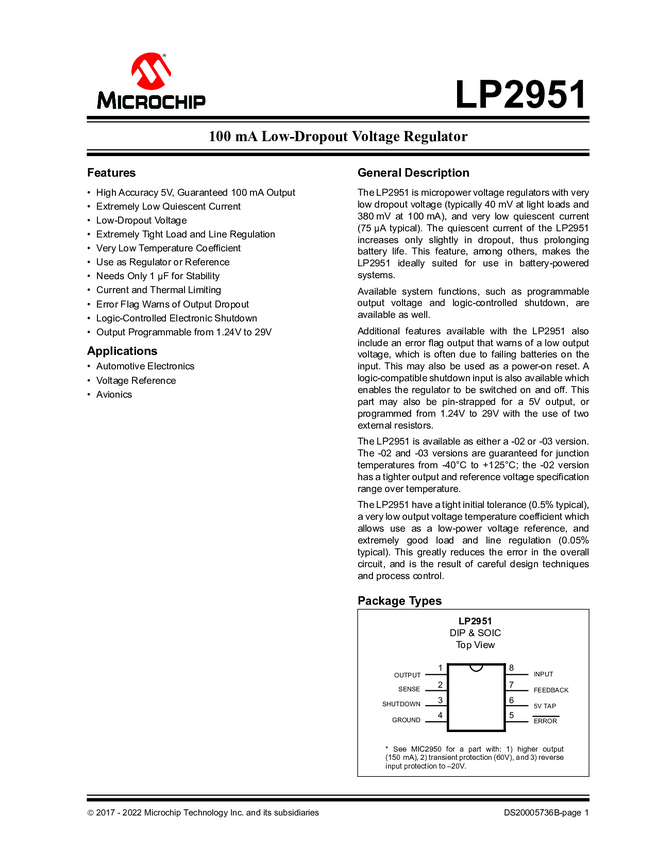 LP2951 - 100 mA Low-Dropout Voltage Regulator