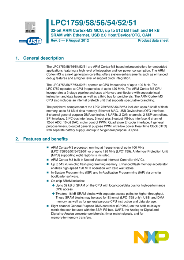 32-bit ARM Cortex-M3 microcontroller; up to 512 kB flash and 64 kB SRAM with Ethernet, USB 2.0 Host/Device/OTG, CAN