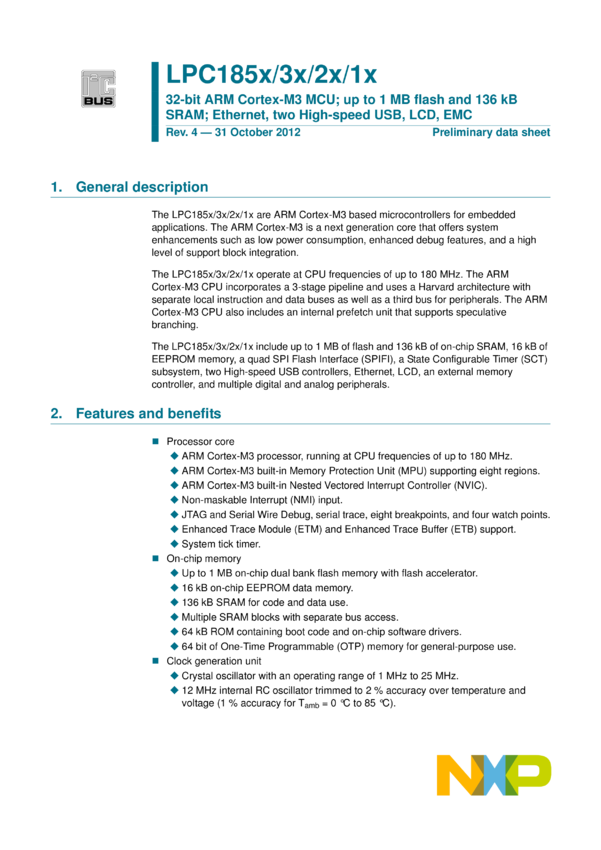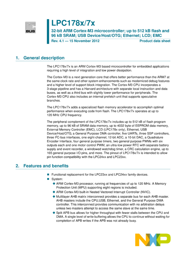 32-bit ARM Cortex-M3 microcontroller; up to 512 kB flash and 96 kB SRAM; USB Device/Host/OTG; Ethernet; LCD; EMC