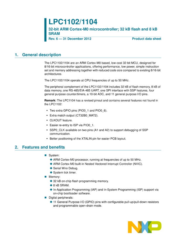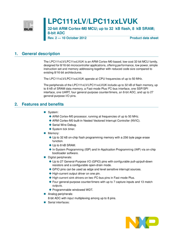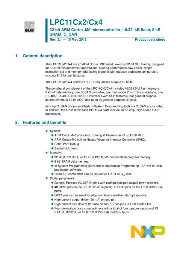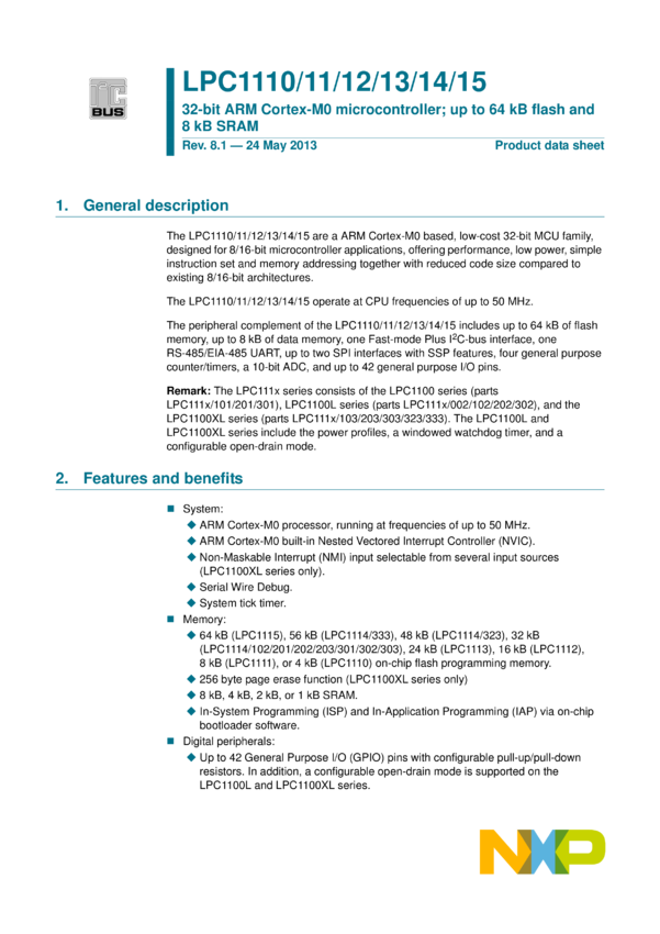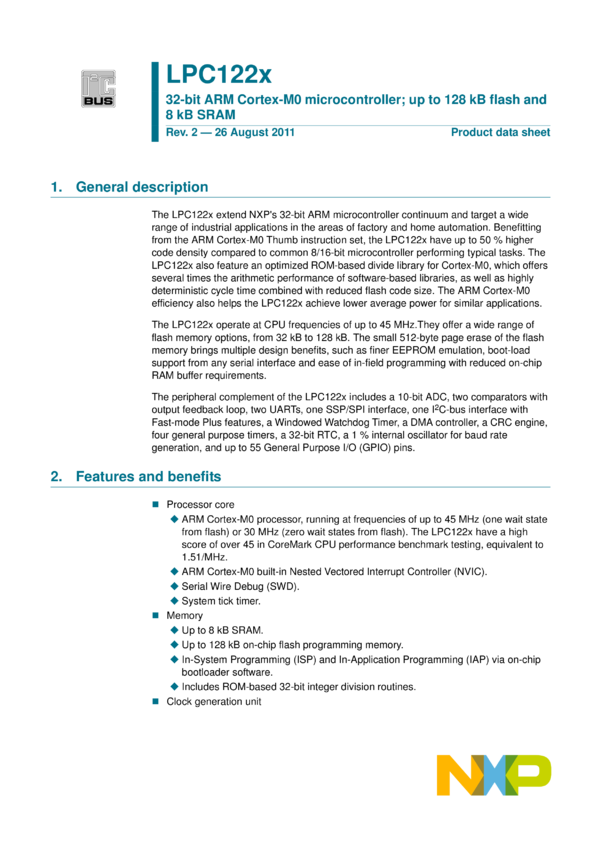 32-bit ARM Cortex-M0 microcontroller; up to 64 kB flash and 8 kB SRAM