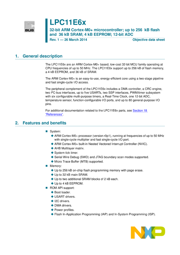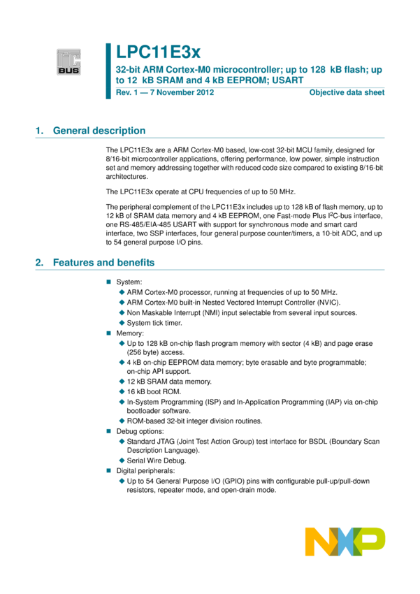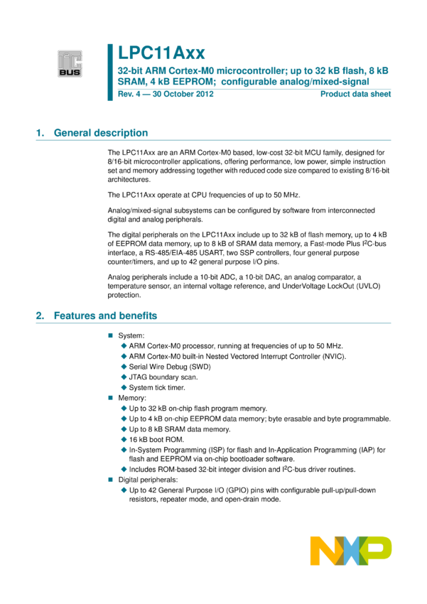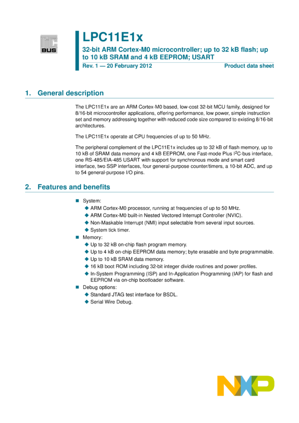 32-bit ARM Cortex-M0 microcontroller; up to 128 kB flash; up to 12 kB SRAM and 4 kB EEPROM; USART
