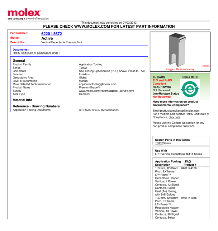 Press-In Tool For 46114 Series LPH Vertical Receptacle