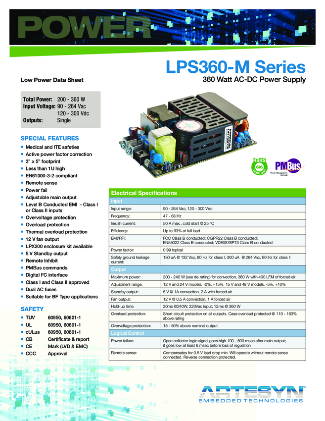 AC/DC Power Supply Single-OUT 5V 70A 350W 19-Pin