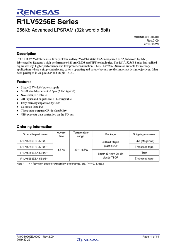 256Kb Advanced LPSRAM (32k word x 8bit)