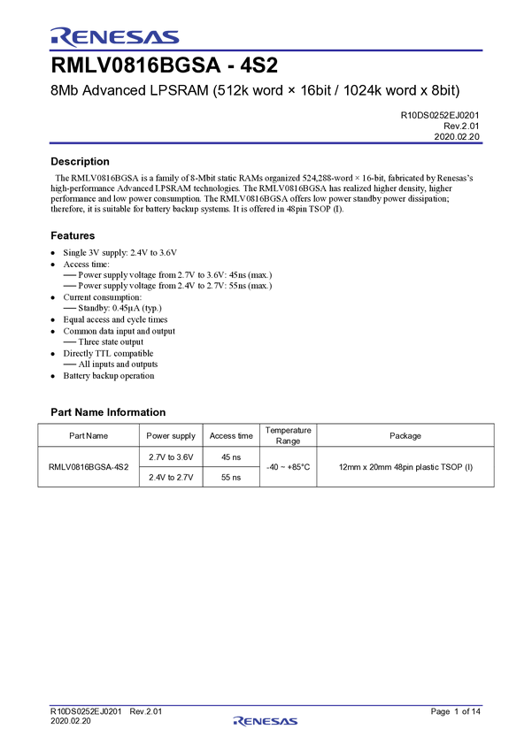 64Mb Advanced LPSRAM (4M word × 16-bit / 8M word x 8-bit)