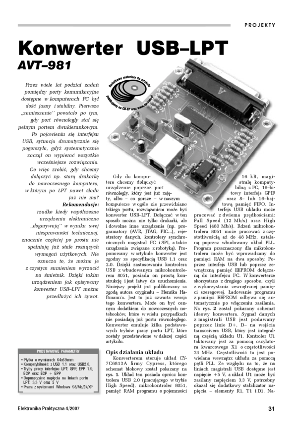 AVT981 A Konwerter USB - LPT - płytka drukowana