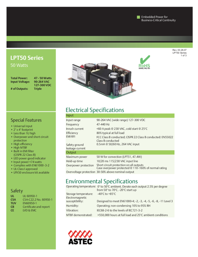 AC/DC Power Supply Triple-OUT 5V/12V/-12V 8A/3A/0.5A 50W 8-Pin