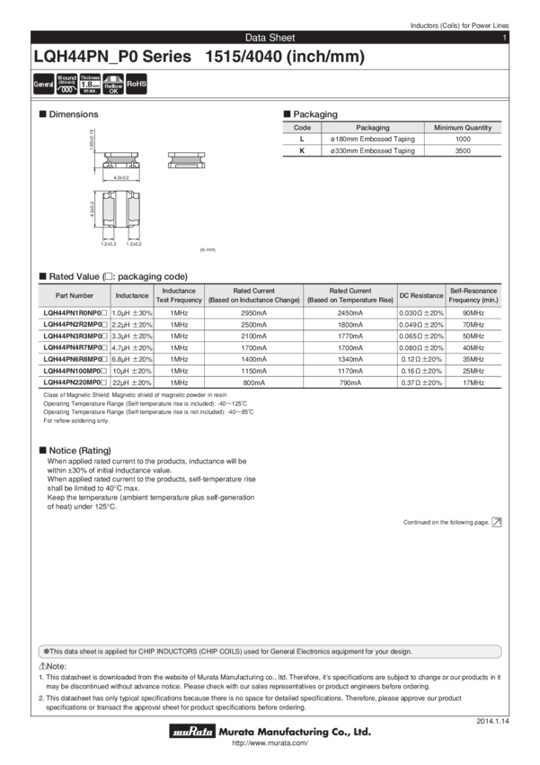 Ind Power Chip Shielded Wirewound 2.2uH 20% 100KHz Ferrite 1.8A 1515 Embossed T/R