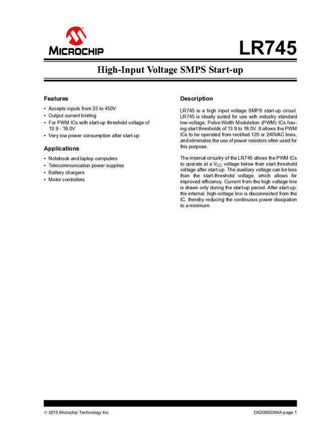 LR745 Datasheet - High Input Voltage SMPS Start-up (06/27/2014)