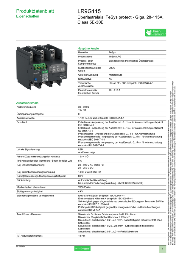 Schneider Electric Przekaźnik przeciążeniowy 1 szt. LR9G115