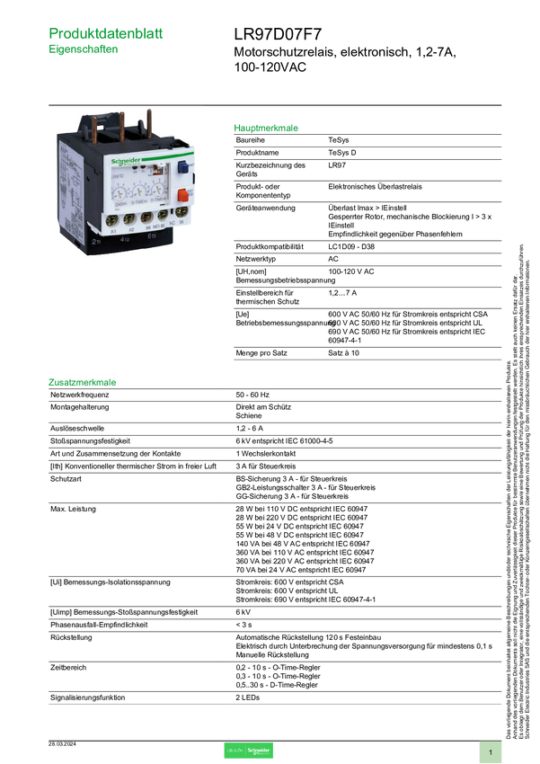 Schneider Electric LR97D07F7 Przekaźnik ochronny silnika, 1 szt.