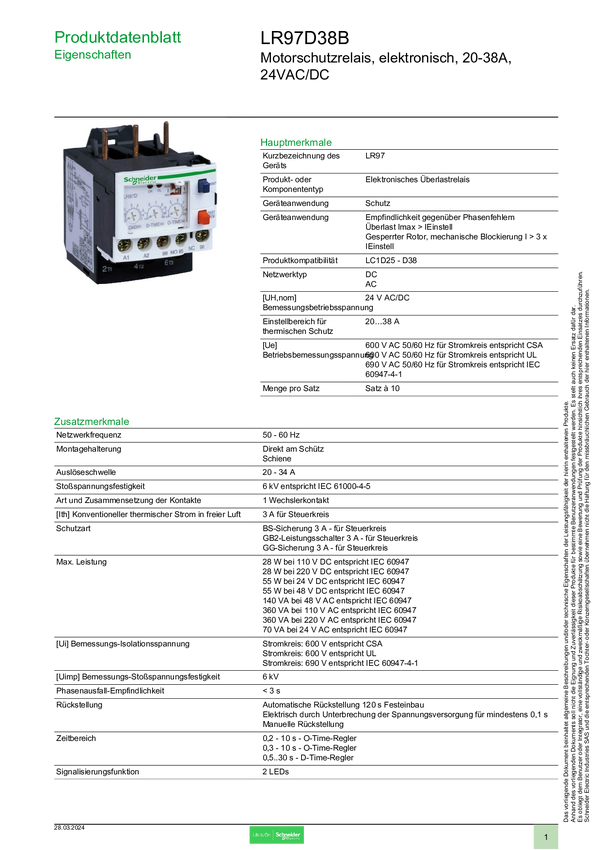 Przekaźnik ochronny silnika Schneider Electric LR97D38B 1 szt.