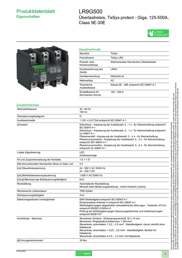 Schneider Electric Przekaźnik przeciążeniowy 1 szt. LR9G500