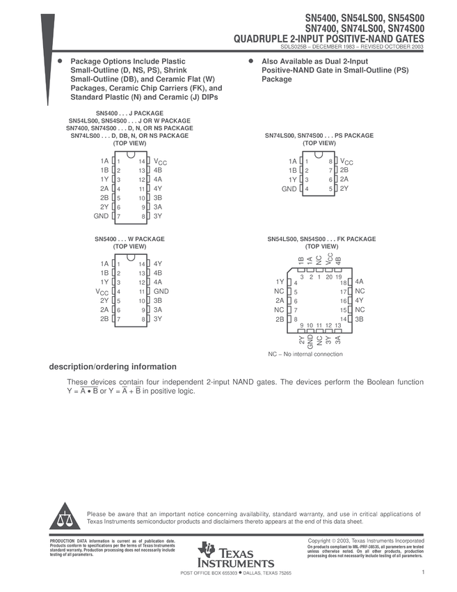 Układ scalony 74LS00SMD, 4 x 2-wej. NAND, SO14