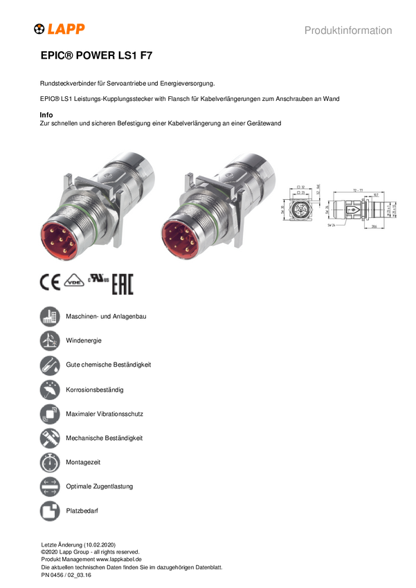 Styk złącza kołnierzowego 76144510 EPIC® POWER LS1 F7 3+PE+4 7,5-15,5 LAPP Zawartość: 20 szt.
