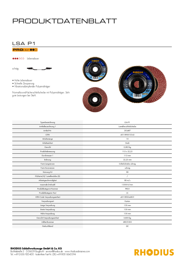 Tarcza lamelkowa Rhodius LSA P1 202481 10 szt.