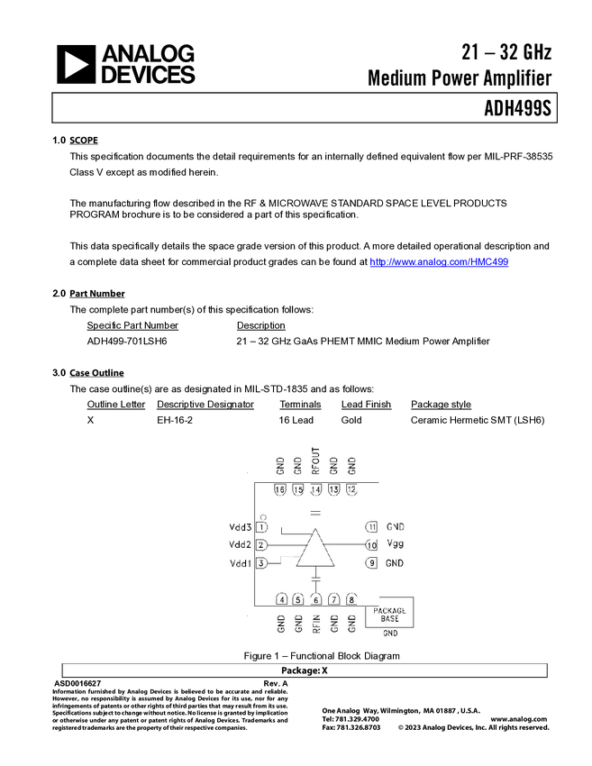 Aerospace GaAs PHEMT, Medium Power Amplifier 21 to 32 GHz, LSH6 Package
