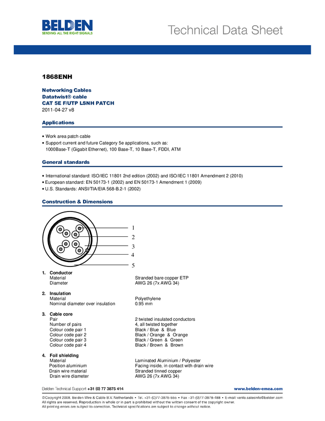 Kabel miedziany Belden U/UTP kat.5e drut LSOH skrętka 305m szary