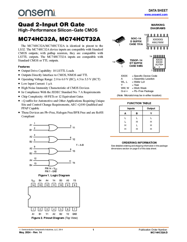 Quad 2-Input OR Gate / CMOS Logic Level Shifter with LSTTL-Compatible Inputs