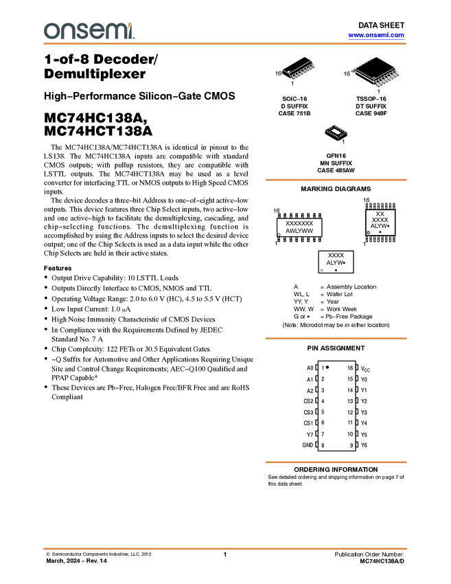 1-of-8 Decoder/Demultiplexer with LSTTL Compatible Inputs