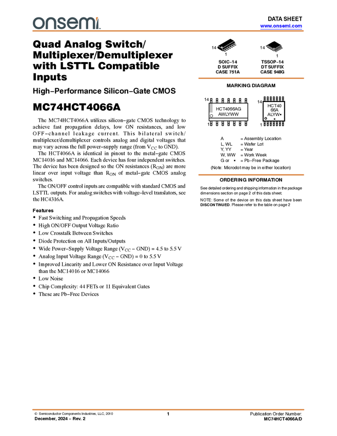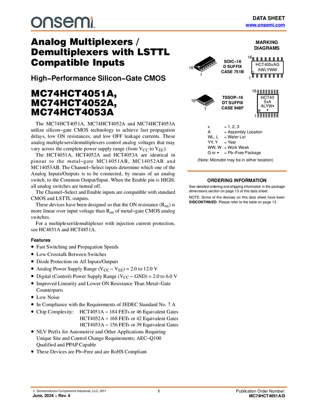Quad Analog Switch/Multiplexer/Demultiplexer/with LSTTL Compatible Inputs