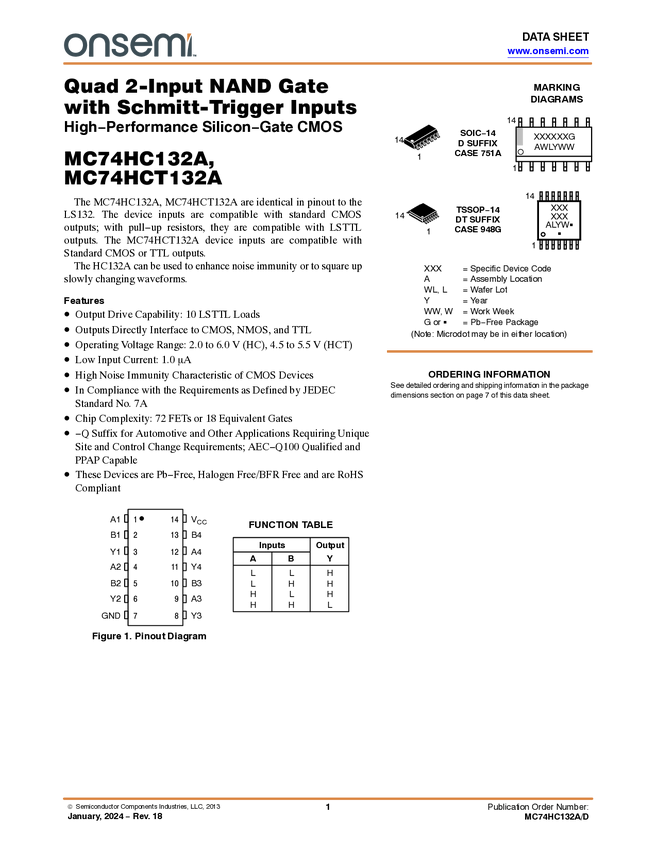 Quad 2-Input NAND Gate with Schmitt Trigger Inputs with LSTTL Compatible Inputs