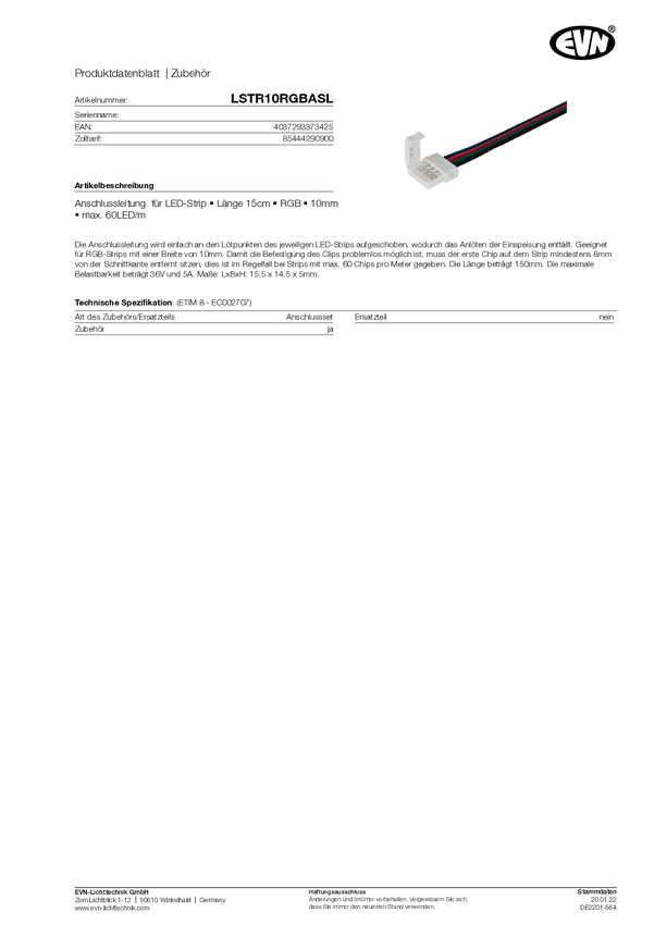 Kabel przyłączeniowy EVN LSTR10RGBASL LSTR10RGBASL, 1 szt.