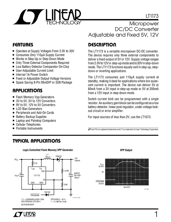 Micropower DC/DC Converter Adjustable and Fixed 5V, 12V