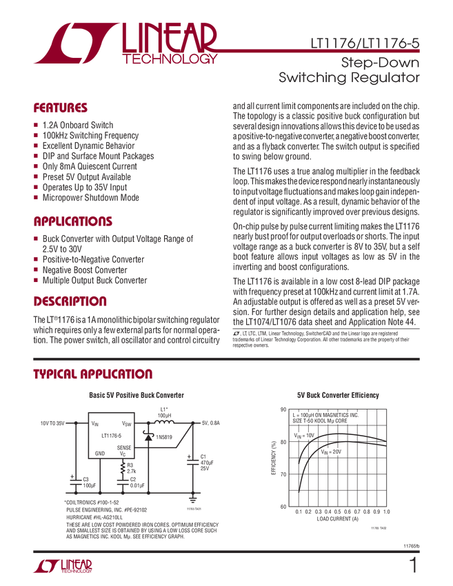 100kHz, 5A, 2.5A and 1.25A High Efficiency Switching Regulators