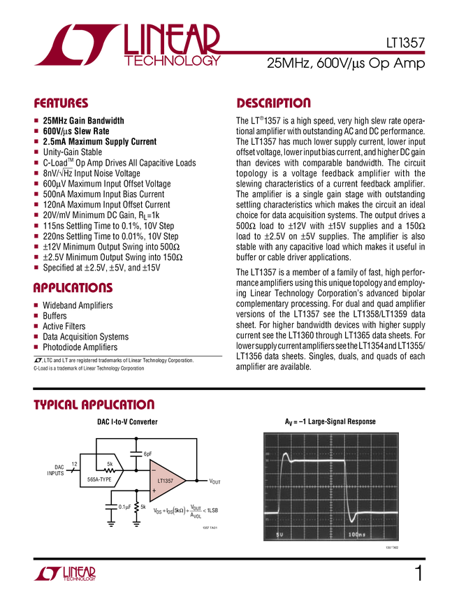 250µA, 3MHz, 200V/µs Operational Amplifier
