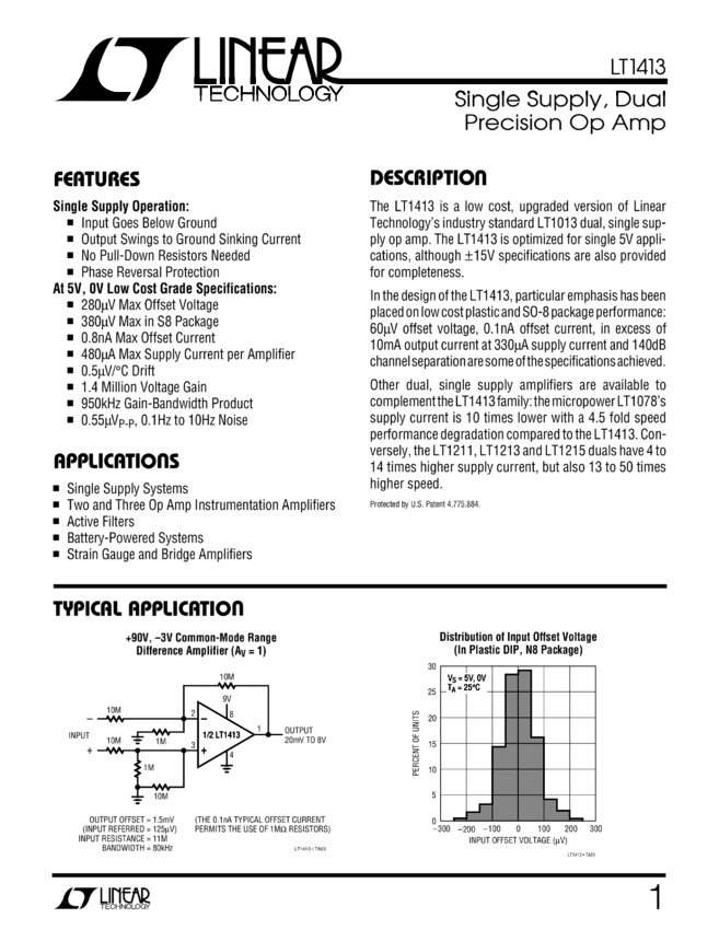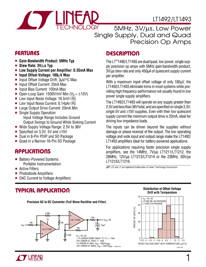 5MHz, 3V/us, Low Power Single Supply, Dual and Quad Precision Op Amps