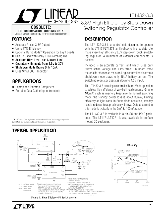 3.3V High Efficiency Step-Down Switching Regulator Controller