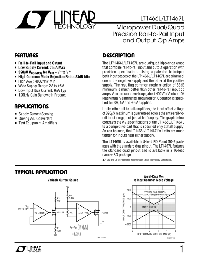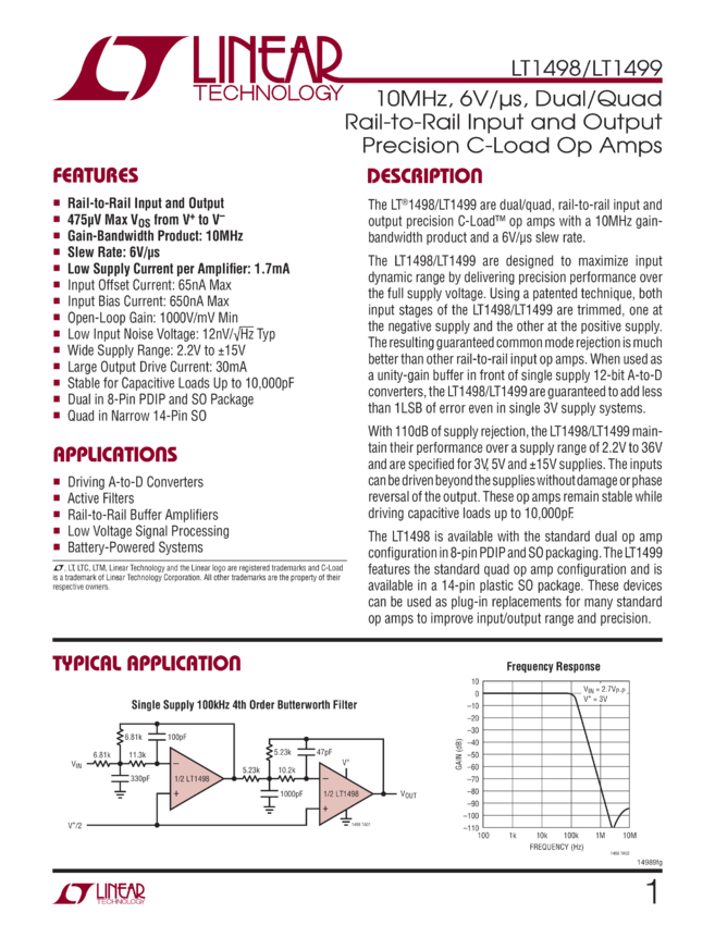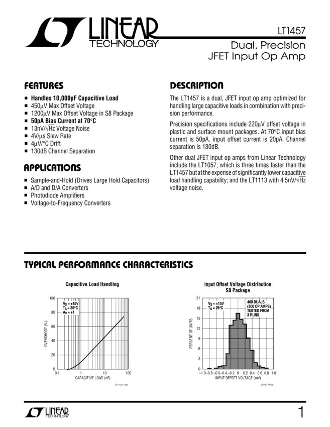 Dual/Quad Micropower, 1MHz C-Load Picoampere Bias Current JFET Input Op Amps