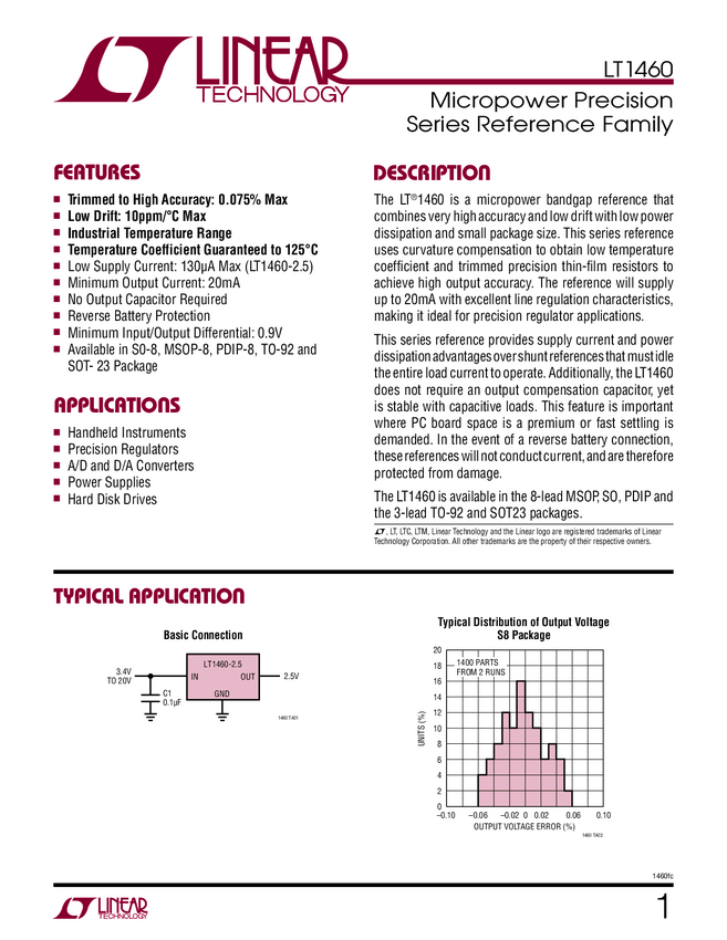 Micropower Precision Low Dropout Series Voltage Reference Family