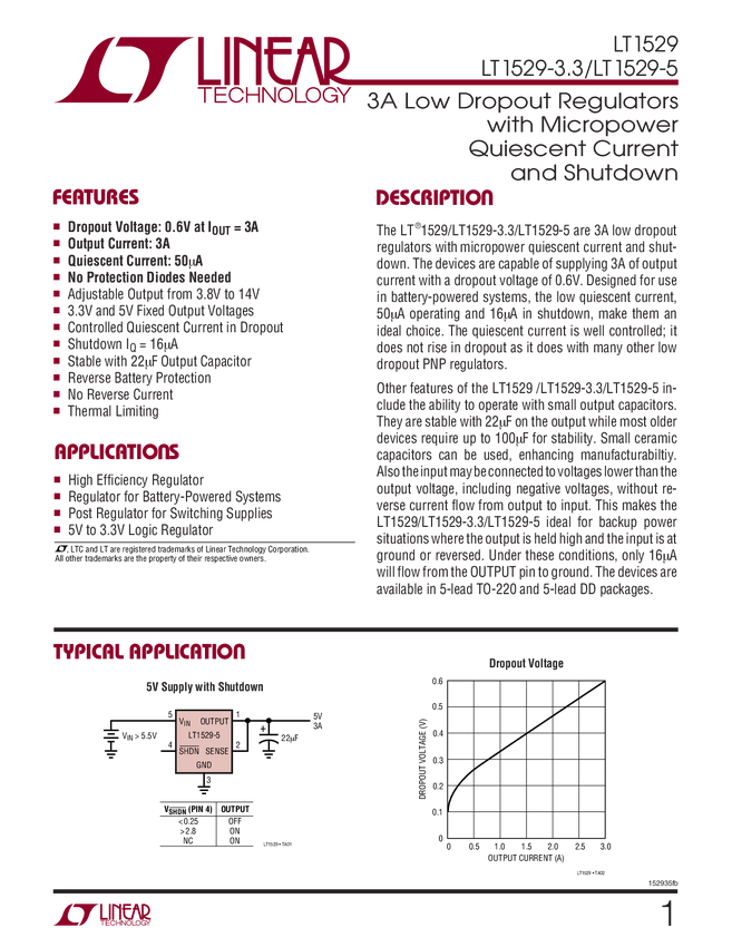 3A Low Dropout Regulators with Micropower Quiescent Current and Shutdown