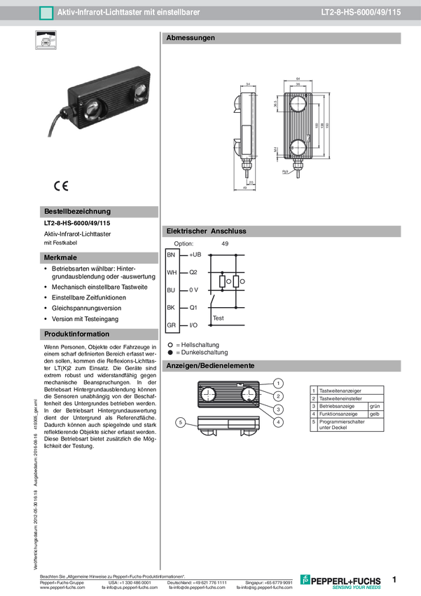 Czujnik światła Pepperl+Fuchs LT2-8-HS-6000/49/115 419305 Przełącznik (Jasność / Ciemność) 1 szt.